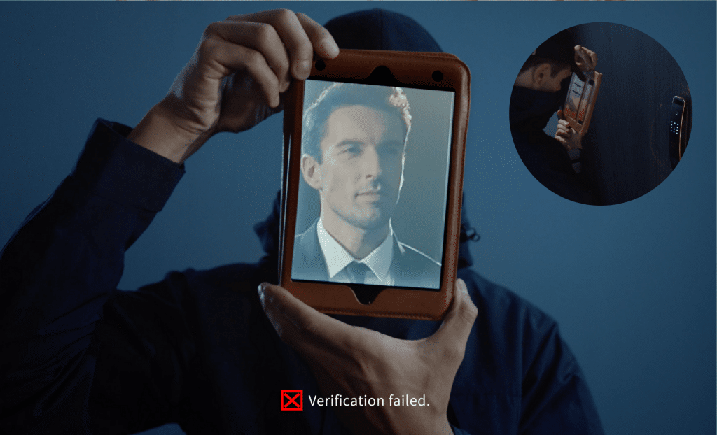 Kaadas x Lamborghini (The Legend) 3D Face Recognition uses a three-dimensional (3D) structured light to cover and capture tens of thousands of recognition points across the face with millimeter-level accuracy. This allows the door access software to capture 3D dynamic information of the face by extracting facial features and bone structure, resulting in a unique 3D face model being created. Additionally, users cannot use a photo or video to unlock the door – so you do not have to worry about strangers gaining access to your home.