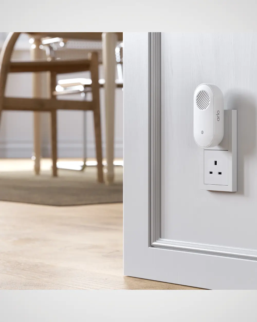 Receive instant alerts for a doorbell press or when motion is detected with the Arlo Chime 2. Easily plug into a wall outlet and connect directly to Wi-Fi for a wire-free install.
