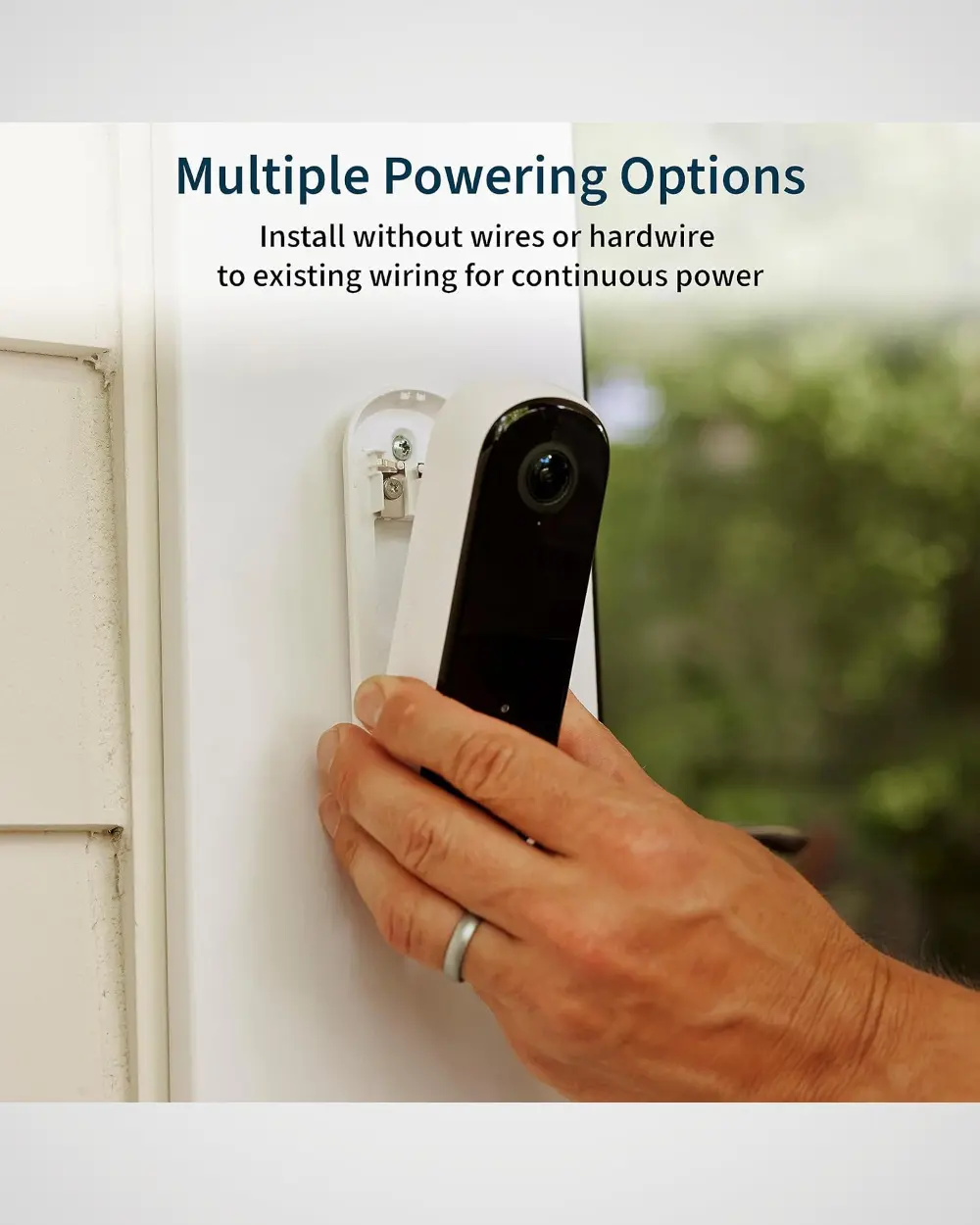 - Multiple Powering Options: You have two options to install this wireless video doorbell. One, without wires using the rechargeable battery, or two, hardwire to existing wiring for continuous power.