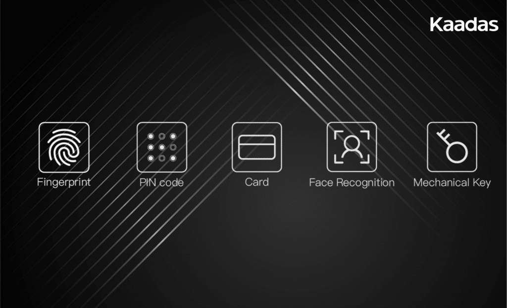 Digital smart locks can be configured for different access methods including PIN codes, fingerprint recognition, RFID cards, or even facial recognition. Most Kaadas locks can be set to require dual verification, such as requiring both fingerprint recognition and a PIN code to unlock, for an additional layer of security. This helps to create a tamper-resistant system to keep you and your family safe.
