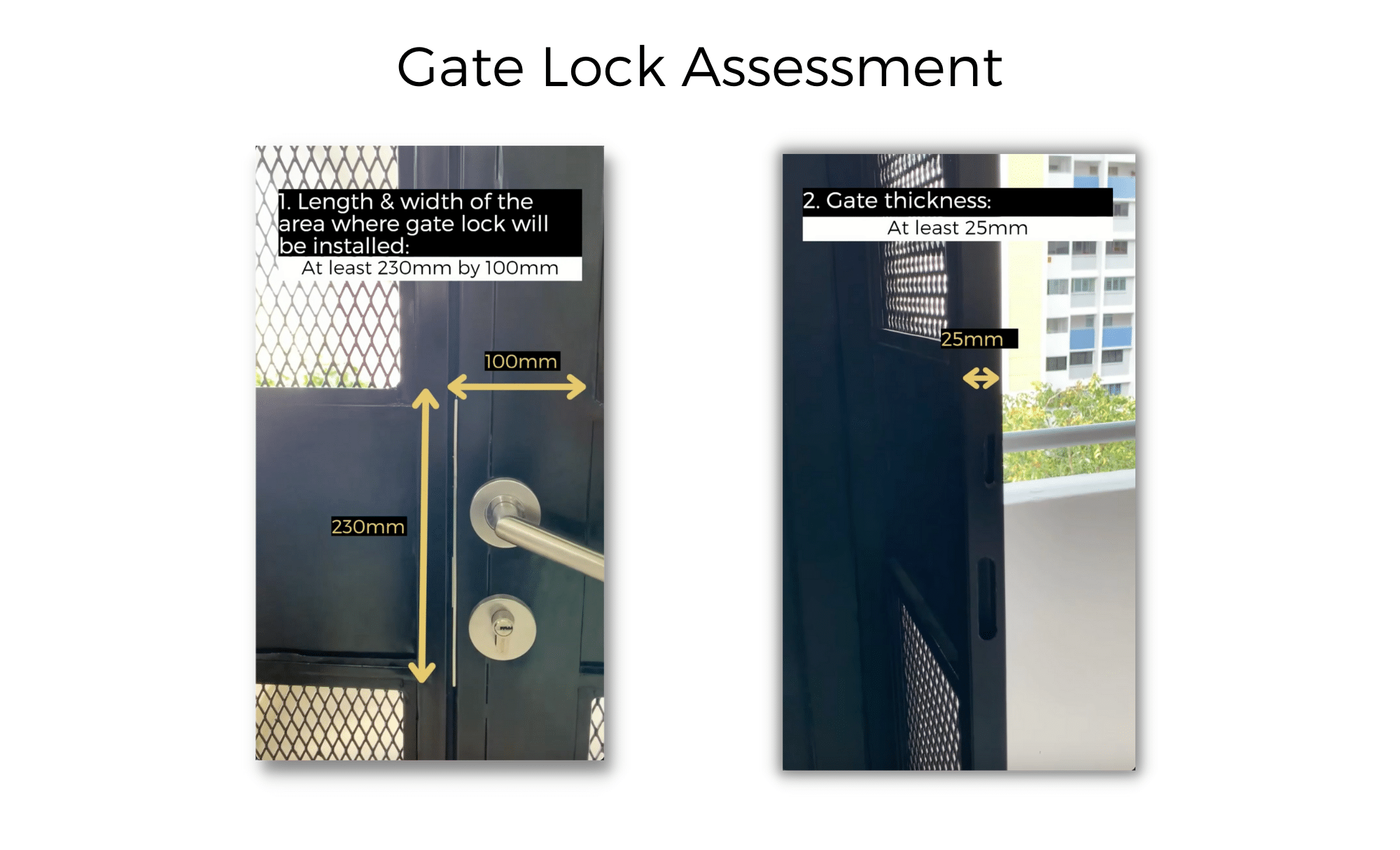 - Length and width of area where lock is to be installed: at least 230mm by 100mm with a flat surface